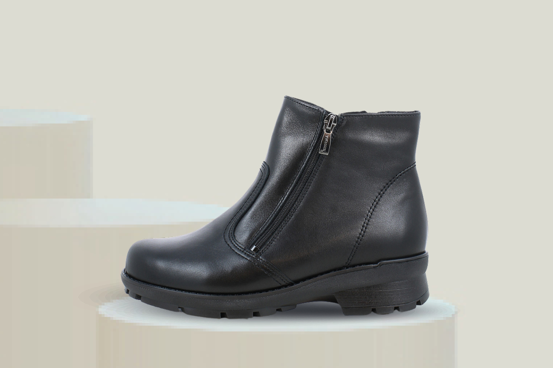 Aaltonen 36380 er en vinterfavoritt for deg som ønsker både komfort, varme og stabilitet. Denne skoletten er laget i mykt skinn og har et innvendig ullfôr som gir behagelig varme selv på kalde vinterdager. Den brede lesten gir ekstra plass, noe som gjør modellen ideell for deg med brede føtter eller behov for mer romslig passform. Dobbel glidelås på sidene gjør skoen enkel å ta på og av, samtidig som den sitter godt rundt foten. Innersålen er uttakbar, slik at den kan byttes ut med egne såler eller ortopediske innlegg ved behov. Yttersålen er utstyrt med GRIP+ gummi, som gir utmerket grep og stabilitet på alle typer underlag – også vått og isete føre. Dette gjør Aaltonen 36380 til et trygt valg for vinteren.