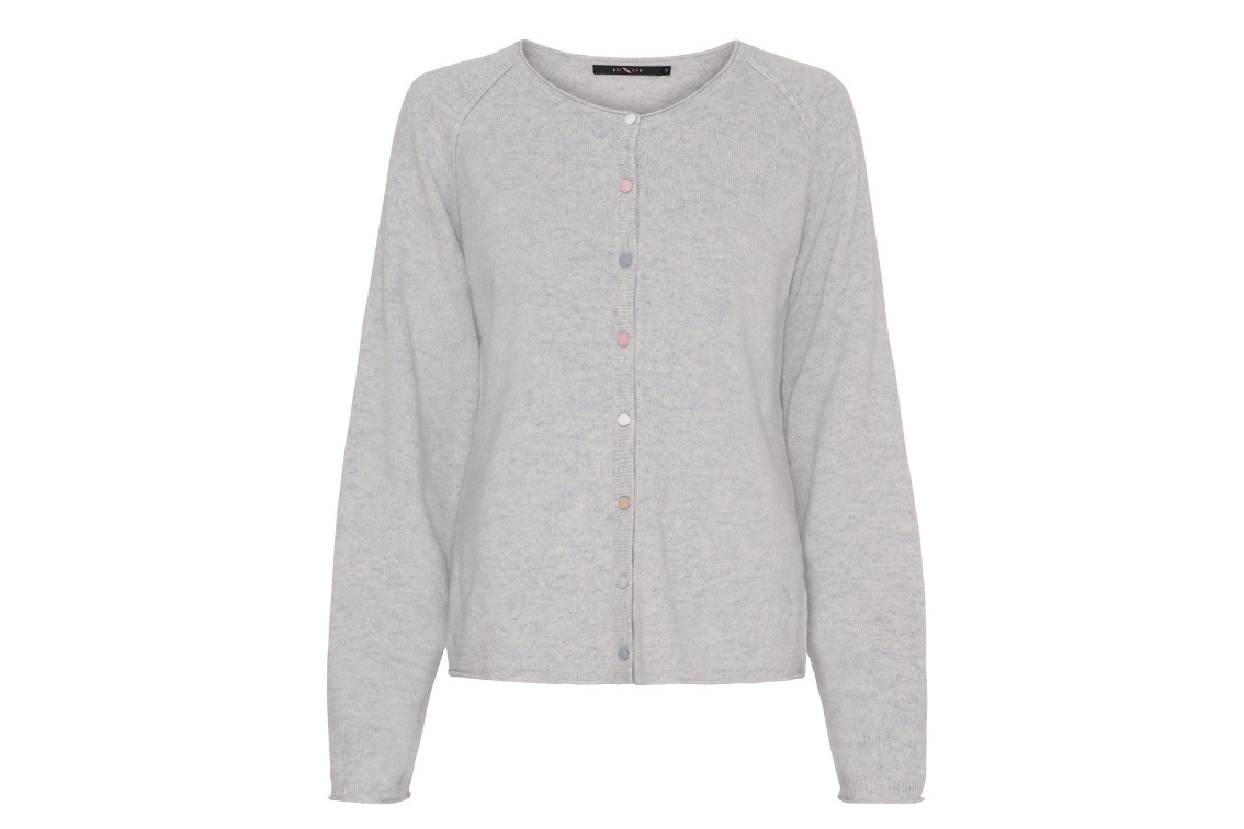 BTF-CPH 500062 – elegant cardigan i luksuriøs kasjmir- og merinoullblanding. Melange-farge med lekre flerfargede knapper og tidløst design.