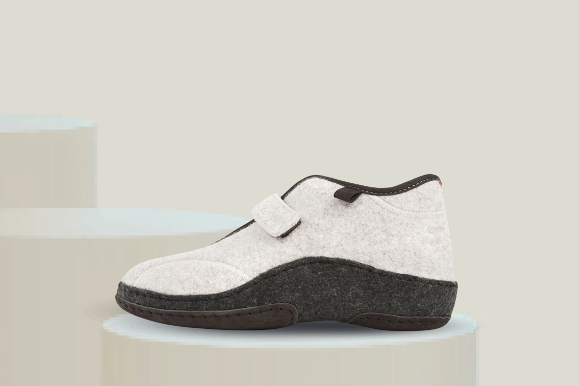 Klaveness Lun CF0081 er en komfortabel innesko designet for å gi optimal varme og stabilitet. Overdelen i ullfilt er laget av høykvalitets naturfiber som både isolerer og puster, slik at føttene holdes varme og tørre uten å føles klamme. Innersålen er dekket med myk ullpels som gir ekstra varme og en lun følelse. Den brede lesten og den store åpningen med borrelåslukking gjør skoen enkel å ta på og tilpasse for best mulig passform. Sålen i termo-filt gir letthet, stabilitet og varme, mens yttersålen i semsket skinn (pig velour) gir godt feste på innendørs underlag. Dette gjør Lun CF0081 til et ideelt valg for innebruk i tørre forhold.