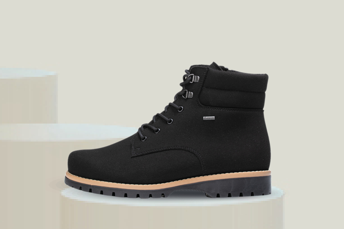 Varmforet vinterboot i slitesterkt mikrosemsket materiale med GORE-TEX®-membran – vanntett, pustende og perfekt til norske vinterforhold.