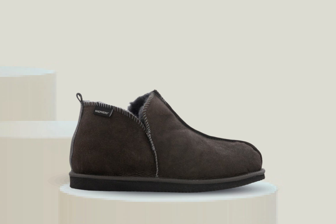 En av Shepherds mest populære modeller – en klassisk og feminin ankelhøy tøffel i ekte saueskinn. Det myke ullforede innermaterialet puster naturlig og holder føttene varme og tørre året rundt. De dekorative sømmene og kantbåndet i tekstil gir tøffelen et tidløst og elegant uttrykk, mens hempen bak i semsket skinn gjør den enkel å ta av og på. Den lette EVA-yttersålen gir god støtdemping og komfort, og gjør Annie perfekt som innesko – både hjemme og på hytta. Med sin klassiske design, naturlige materialer og høye kvalitet er Shepherd Annie en favoritt du vil bruke igjen og igjen.