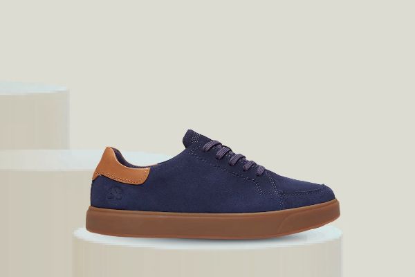 Timberland Emerson er en allsidig og stilsikker sneaker med en kombinasjon av urbant uttrykk og naturlige materialer. Den marineblå overdelen i semsket skinn møter en kontrastdetalj i brunt lær ved hælen, og gir skoen et moderne og sofistikert utseende.