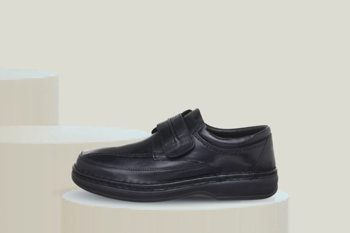 ARA 17101-01 er en elegant og komfortabel herresko med ekstra bred passform (K-vidde) – spesielt utviklet for deg som trenger litt mer plass til foten. Den er laget i førsteklasses svart glatt skinn som gir et tidløst uttrykk, og har et mykt skinnfôr som sørger for høy komfort gjennom hele dagen. Et stort pluss er den praktiske borrelåslukkingen, som gjør skoen enkel å ta på og av – ideell for hverdagsbruk eller jobb. Den uttagbare innersålen kan enkelt tas ut for rengjøring eller byttes ut med egne innleggssåler.