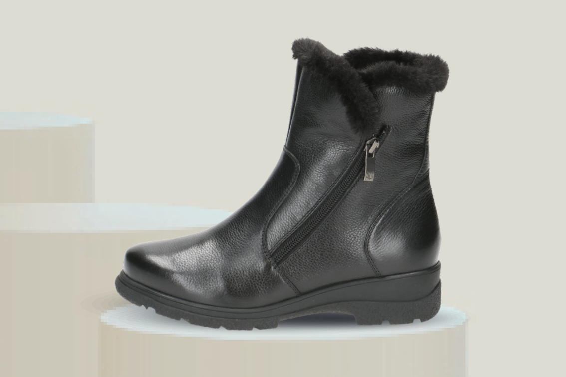 En stilren og komfortabel ankelstøvlett fra Caprice med deilig varmt för. Overdelen er laget i mykt skinn som gir et eksklusivt preg, kombinert med fleksibilitet og slitestyrke. Med vidde H er modellen spesielt egnet for deg med litt bredere føtter, og gir ekstra plass ved forfoten for økt komfort. Den innovative Caprice-innersålen har opptil 300 luftkupler som gir optimal luftsirkulasjon, et friskt fotklima og en dempende effekt som reduserer belastning på hele kroppen. I tillegg kan den uttagbare innersålen enkelt byttes ut med egne spesialtilpassede innleggssåler for en individuell passform. Glidelås i siden gir enkel på- og avtagning, mens det lave, stabile designet gjør støvletten velegnet til daglig bruk.