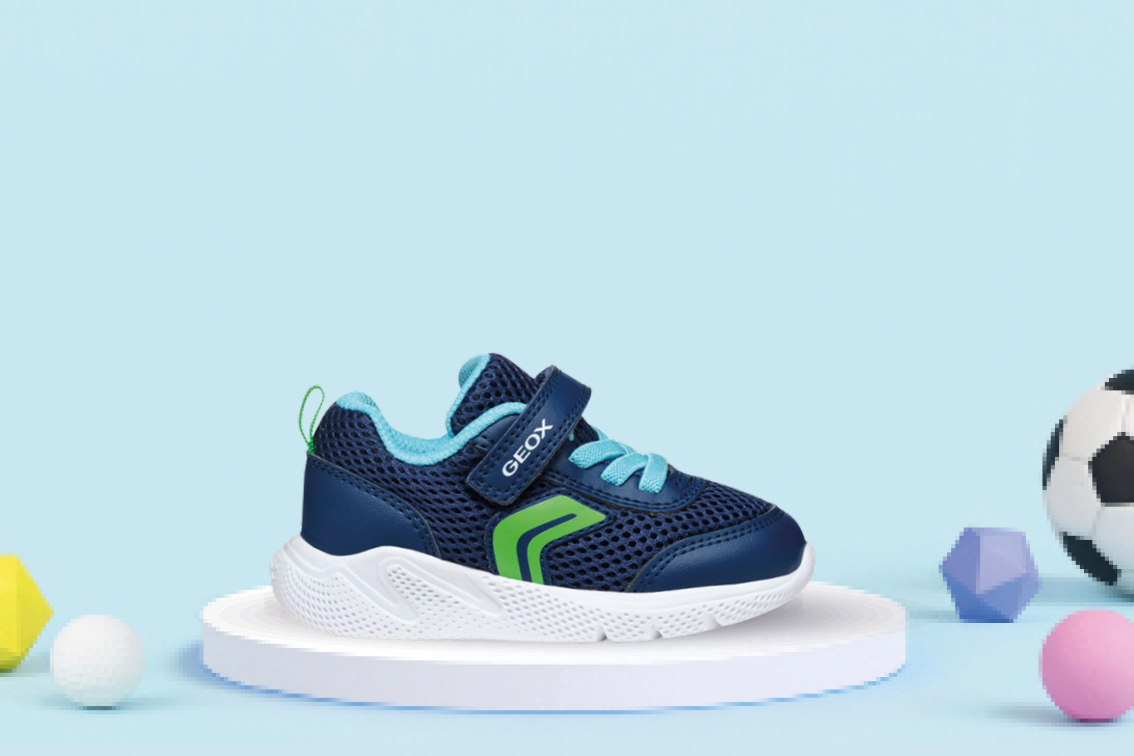 Geox Sprintye B454UC 01454 er en sporty og lett sneaker for de minste, utviklet med tanke på bevegelse, lek og komfort. Denne modellen i marineblått med friske detaljer i grønt og lyseblått har et klassisk løpeskodesign som både ser bra ut og føles godt på foten.