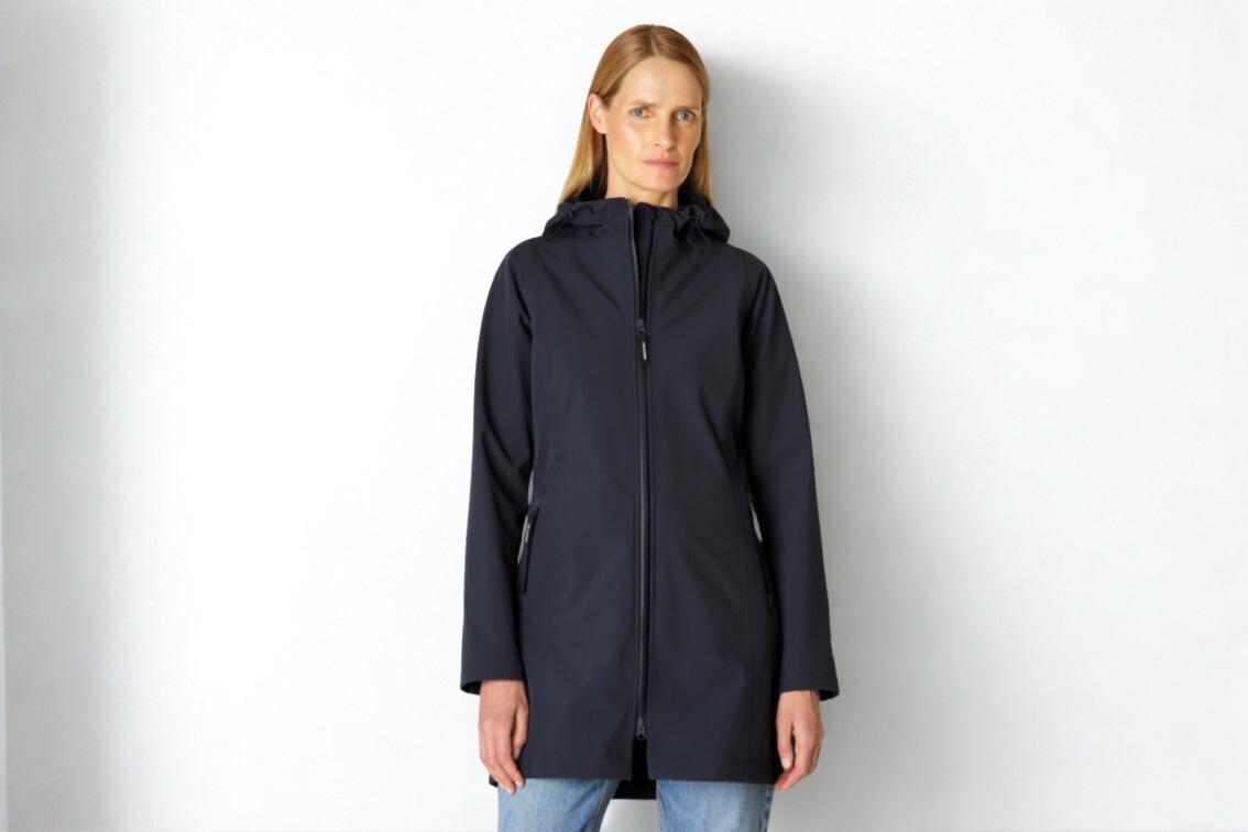 Lang softshell-regnjakke med feminin passform, god stretch og fleecefôr for komfort i all slags vær. Perfekt til både hverdagsbruk og aktive dager ute.