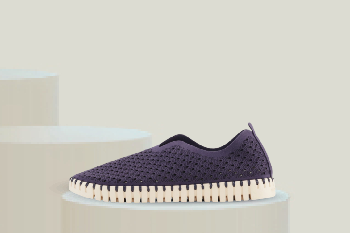 Lett og komfortabel slip-in sko med fleksibel såle og stilrent perforert design. Perfekt til hverdagsbruk, reise, jeans og avslappede sommerantrekk.