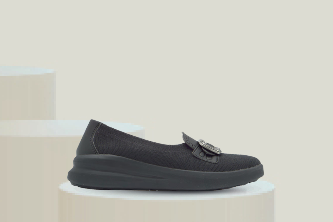 Overdelen er laget i lett 3D-strikket merinoull som føles myk og behagelig mot foten. Materialet er pustende og temperaturregulerende, noe som hjelper føttene å holde seg friske og komfortable gjennom hele dagen. Den fleksible joggesålen gir god demping og en sneaker-lignende følelse, samtidig som skoens klassiske design passer perfekt til bunad.