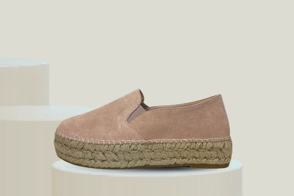 Denne klassiske Macarena espadrilloen er håndlaget i Spania. Overdelen er av flott semsket skinn, et mykt og behagelig materiale som puster. Skoen har en rund tå for behagelig passform og en tykk plattformsåle. Denne stilige espadrillosen passer perfekt i sommergarderoben. Espadrillos er akkurat passe pyntet til å kunne brukes til enhver anledning, enten du er på fest eller om du bare skal en tur på cafë i byen.