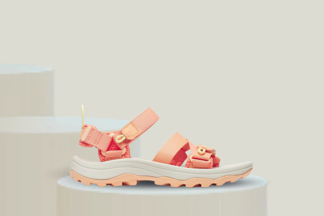 Overdelen er laget av pustende mesh, mikrofiber og 100 % resirkulert webbing, som gir både god ventilasjon og slitestyrke. Den justerbare borrelåslukkingen gjør det enkelt å tilpasse passformen etter foten.