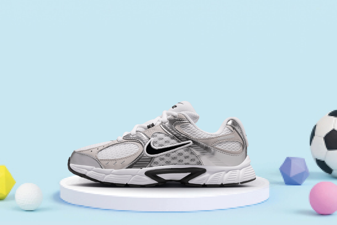 Nike V5 RNR HQ6411-100 er en moderne, lett og fleksibel barnesko utviklet for aktive dager. Overdelen består av pustende mesh som sørger for god luftgjennomstrømning, kombinert med syntetiske forsterkninger som gir ekstra stabilitet og slitestyrke. Den myke og responsive mellomsålen gir komfortabel demping i hvert steg, mens yttersålen i solid gummi gir godt grep på både lekeplass, asfalt og innendørs underlag.