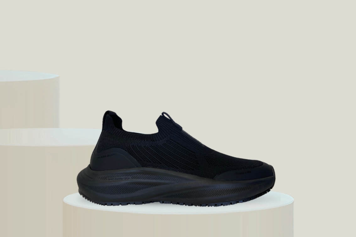Slip-in design gjør skoen enkel å ta av og på, samtidig som den sitter godt på foten. Den sklisikre yttersålen gir ekstra trygghet på glatte gulv, mens den støtdempende mellomsålen reduserer belastning på føtter og ben.