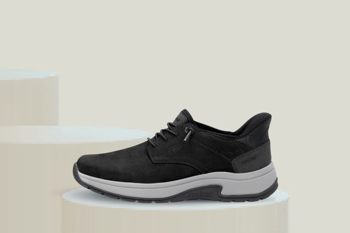 Rieker 11050-00 kombinerer moderne design med maksimal komfort. Med Ready2GO-funksjon for enkel på- og avtagning, støtdempende såle og praktisk hurtigsnøring, er denne skoen perfekt for deg som vil ha en sko som fungerer hele dagen – uten å måtte knyte lisser.