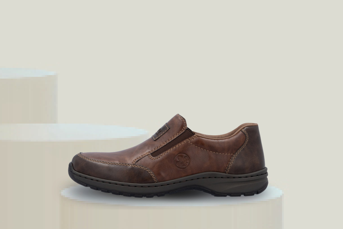 Komfortabel mokkasin til herre fra Rieker med ekstra bred passform og uttakbar innersåle. Et godt valg for hverdagsbruk med fokus på komfort og enkel påtagning.