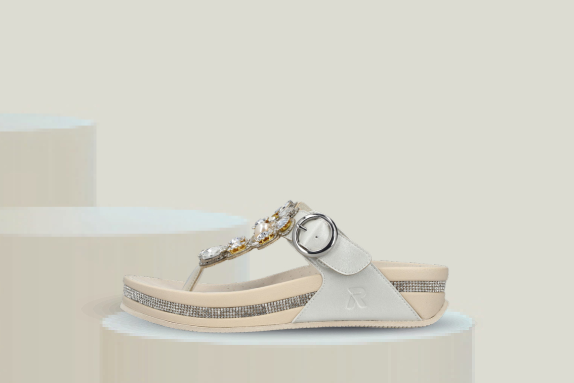 Elegant sommersandal med tåstropp og dekorative detaljer som gir et feminint og eksklusivt uttrykk. Passer perfekt til sommerfester, ferier og fine hverdager hvor du vil pynte deg litt ekstra.