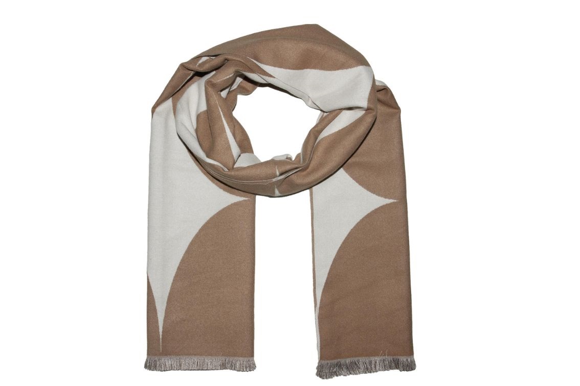 Klassisk dameskjerf i camel med moderne rundingsmønster