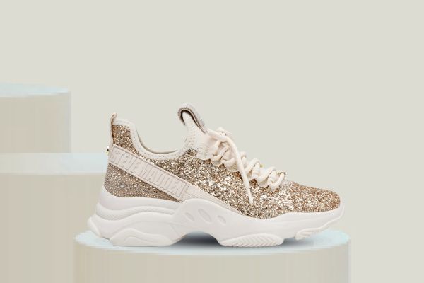 Steve Madden Maxilla er en sporty sneakers med chunky såle. Superenkel å få på med sin sokkelignende slip-on åpning. Den sneakersen i gull er både stilren og trendy. Tøff til både jeans, kjole og shorts. Med et par Steve Madden sneakers vil du alltid se fresh ut.