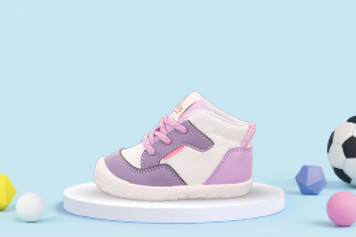 Snøring gjør skoen enkel å tilpasse og sørger for stabil passform som sitter godt på foten under lek og aktivitet. De fine fargene i lilla, rosa og hvit gir skoen et lekent og moderne uttrykk som mange barn vil like.