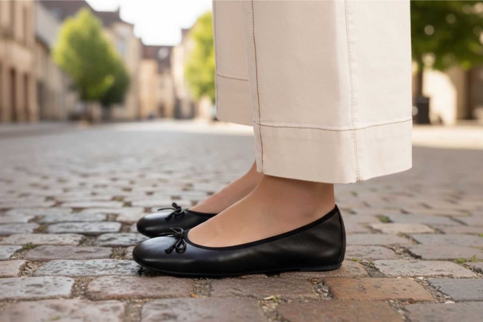 Elegant og tidløs ballerina i mykt skinn med rund tå og dekorativ sløyfe. Perfekt til jobb, fest og hverdagsbruk